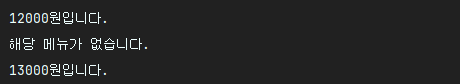 System.out.println("해당 메뉴가 없습니다.");