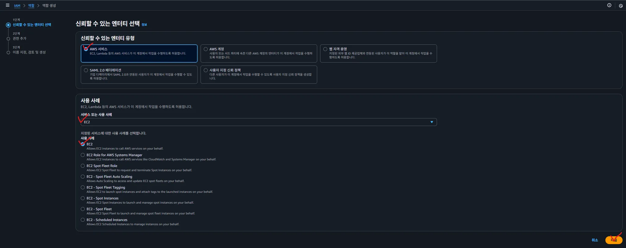 EC2 인스턴스에서 S3 버킷에 접근할 수 있도록 정책을 추가하였습니다.