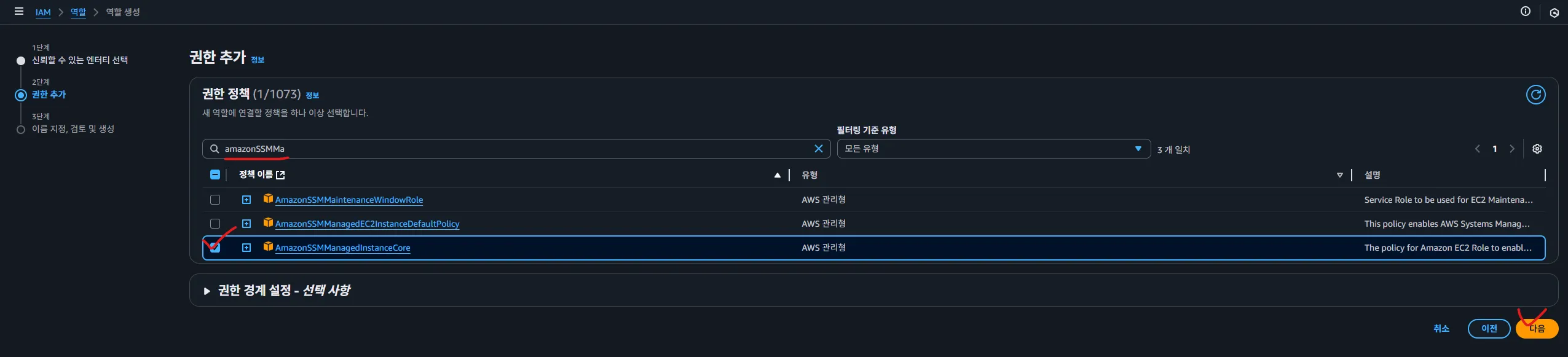 AmazonSSMManagedInstanceCore 관리형 정책을 추가합니다.