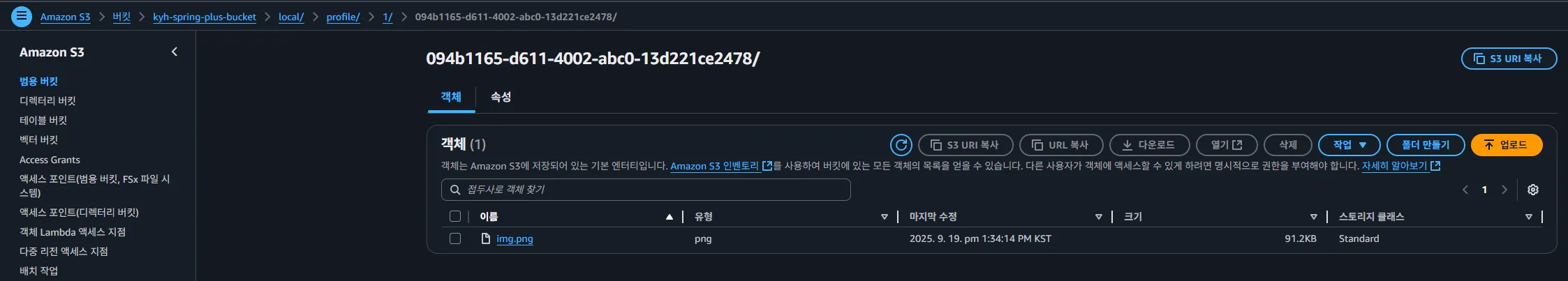 S3 콘솔에서 업로드된 파일 확인